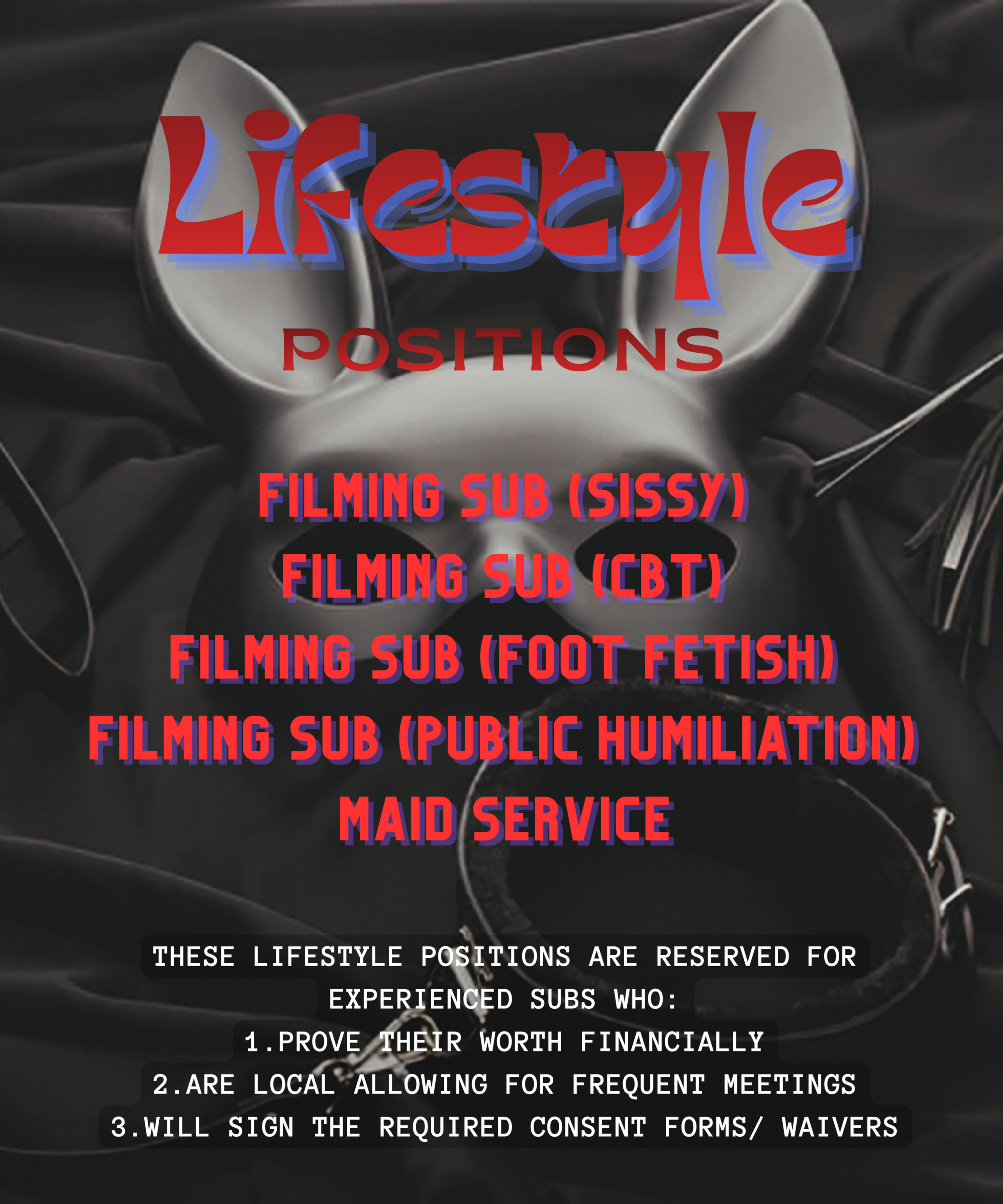 | Sissy Training | $150 | $250 | 30min | 60min |