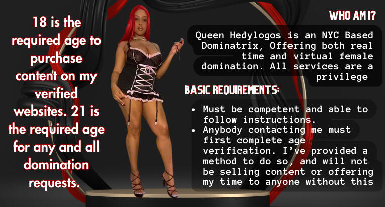 BEFORE YOU CAN BOOK A SESSION, YOU MUST BOOK A VERIFICATION FACETIME. SUBMIT THE FORM BELOW, TRIBUTE $50, THEN WE CAN SCHEDULE THIS VIRTUAL CONSULTATION. FACETIME WILL COMPRISE OF ID AGE VERIFICATION FOLLOWED BY Q&A